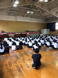 一年生一泊移住が終わり、少し登校時間を遅らせて集合しました。