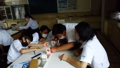 3、4組は光の実験を行いました。初めての第1理科室を利用した実験です。