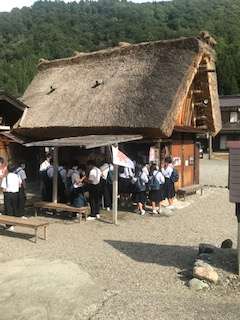 白川郷での自由散策が始まりました。さっそく、かき氷・ソフトクリーム・飛騨牛串焼き・ほか、土産物の購入など楽しんでいます。白川郷のマナーガイドを参照しましょう。