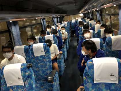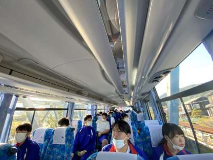 牧歌の里行きとサイクリング行きのバスの様子の写真です。