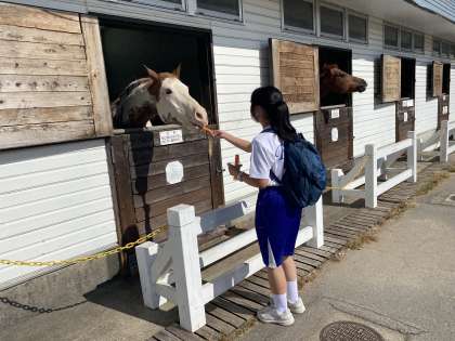 牧歌の里、キャンドル作りが終わり自由散策をしています。動物の餌やりや多くの花が咲いています。