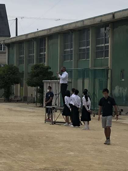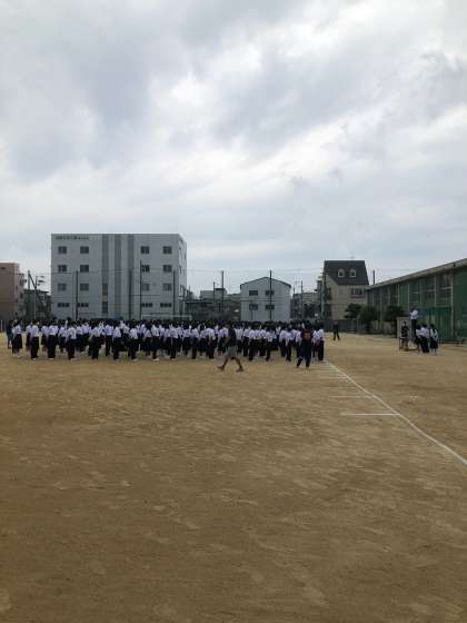 全校集会があり、これまでは教室から担任が引率のもとグランドへ連れてきていましたが、本日より各自でグランドへ集会になりました。