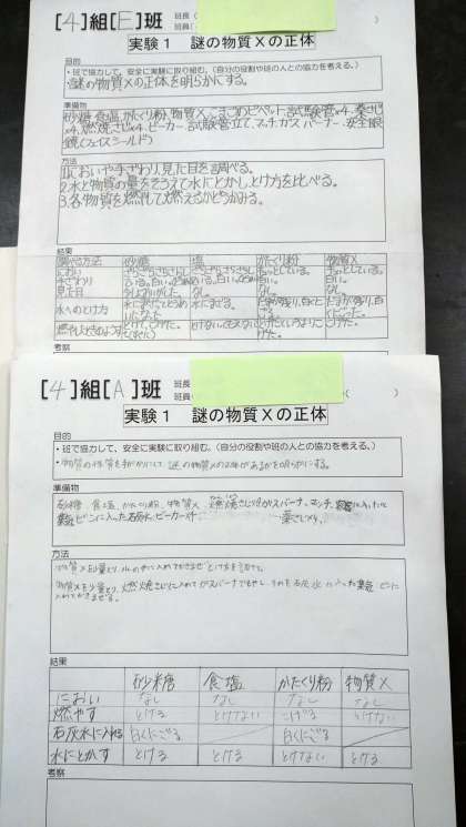 本日は「物質Xの正体を調べる」実験を行いました。