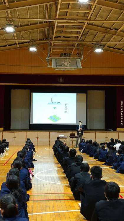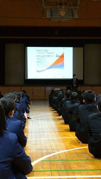 地球温暖化と人間生活の関連について、日本と世界の現状についてのお話でした。温室効果ガスである二酸化炭素を減らすためにどうしていくか、持続可能な社会に変わっていくために何をすべきか、社会全体で考えていく必要があります。