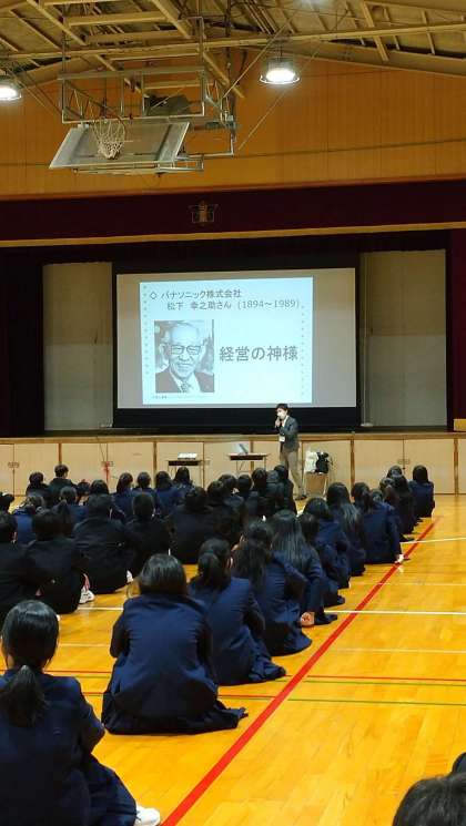 グリコのキャラメルを作り出した江崎さんのお話や、パナソニックの創始者である松下さんのお話もしていただきました。世の中に役に立つものをうみ出そうと努力し続けた企業家の活躍から、どんな困難な状況にも諦めず、最後までやりとげることの大切さを学びました。