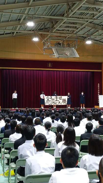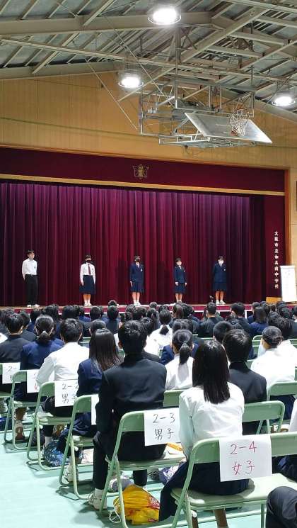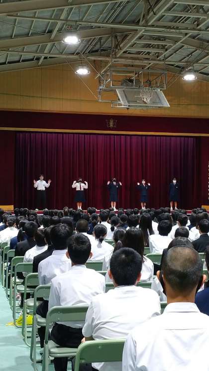 今年度、初めての3学年そろっての学校行事となった文化発表会。生徒会の挨拶でスタートしました。