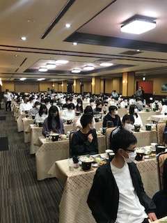 コロナ感染防止のため、全員一方方向を向いて黙食です。