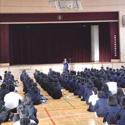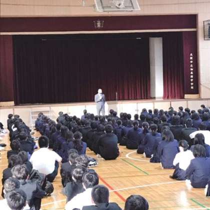 本日の全校集会は、教頭先生の講話と生徒会からの牛乳パック回収作業の連絡がありました。