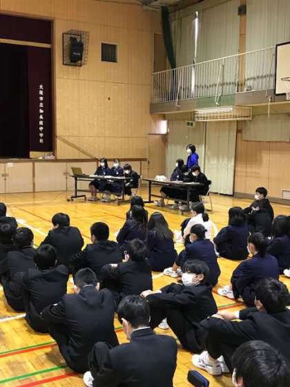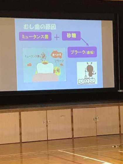 保健委員が司会進行を務め、歯の健康について、歯肉炎・歯周病の症状や歯磨きの方法などをクイズ形式でわかりやすく説明してくれました。