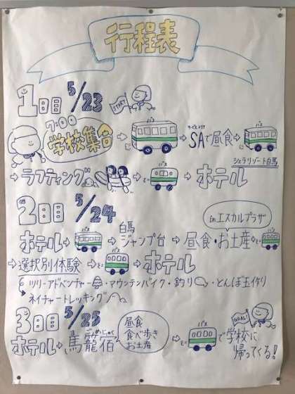 3年生は、5月23日から長野県白馬方面に向けて2泊3日の修学旅行に出発します。