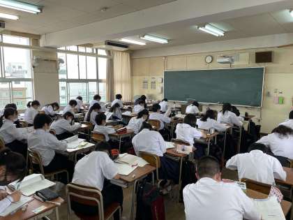 本日6限:総合の時間は中間テスト前の自学自習時間です。写真はその様子です。みんな熱心に集中して、取り組んでいました。