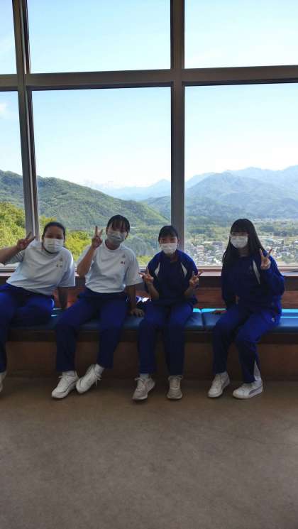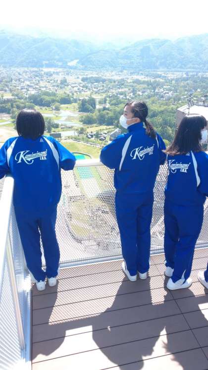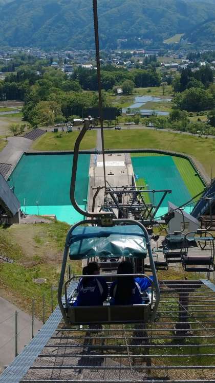 長野オリンピックのスキージャンプ台を見学しています。