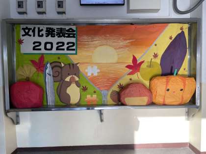 写真は美術部が制作してくれた、玄関掲示の作品です。