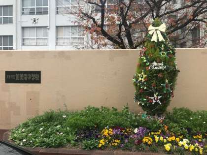 正門の花壇がクリスマス?バージョンに変わりました。