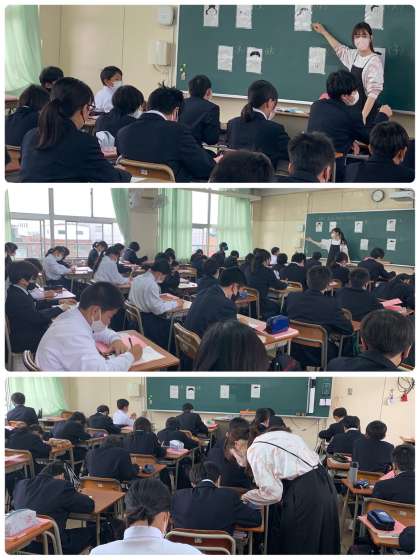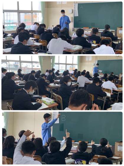 上から順に、1−1、1−2、1−3です。全員が背筋を伸ばして、前のめりになって、真剣に授業に取り組んでいました。