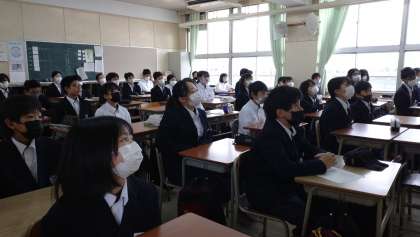集中して校長先生のお話を聞いています。