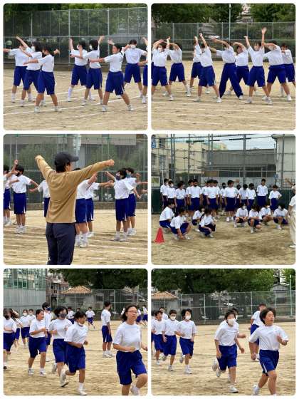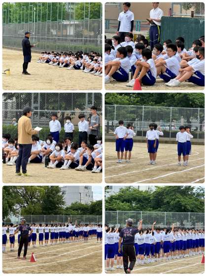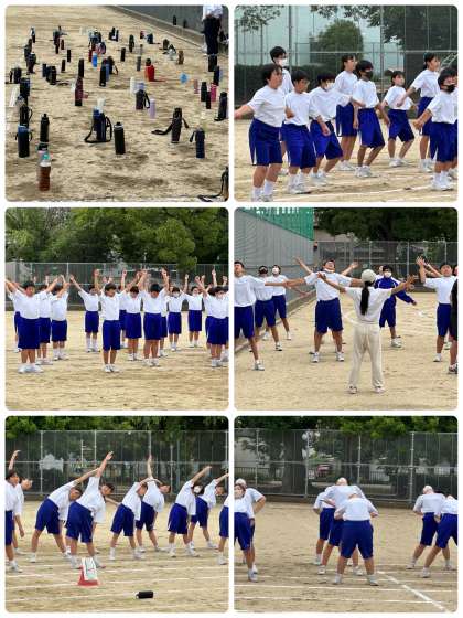 3・4限目は、1年生が2年生と同様に入場、開会式、ラジオ体操、生徒席への退場までの練習を行いました。