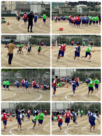 1年生も第1学年学級対抗全員リレーの動きの練習を行った後、実際にリレーをしました。