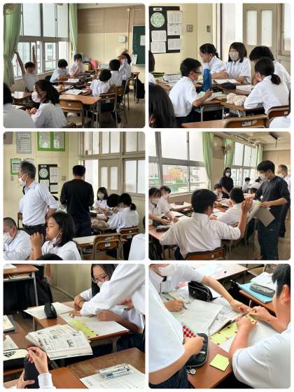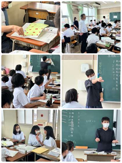 本日6月6日(火)1限目は、大阪市教育センターの学力向上支援員の先生が、1年1組の数学科授業を見学に来られました。