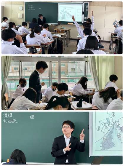 単元としては、火山の説明をしていましたが、とにかく楽しそうに授業を展開していたのが印象的でした。