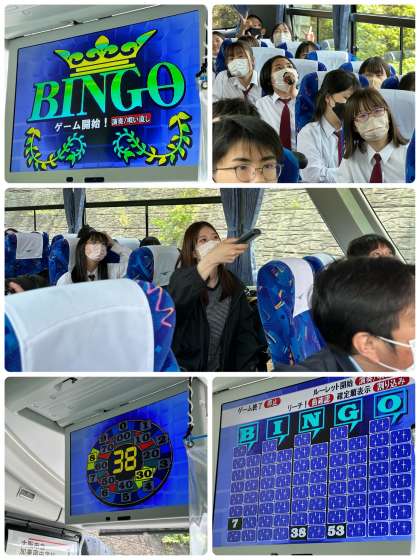 大盛り上がりをした、1号車のビンゴ大会の様子です。