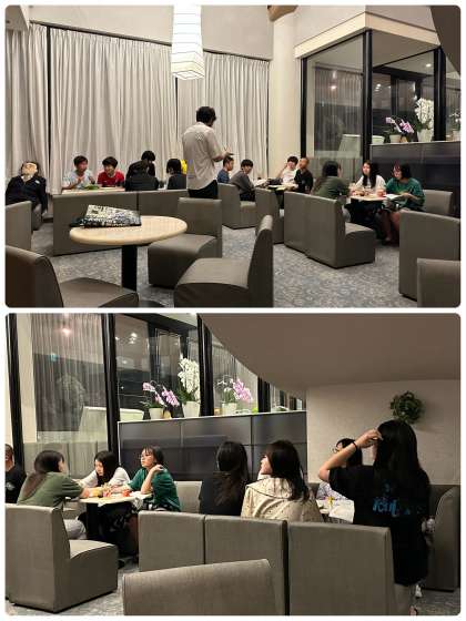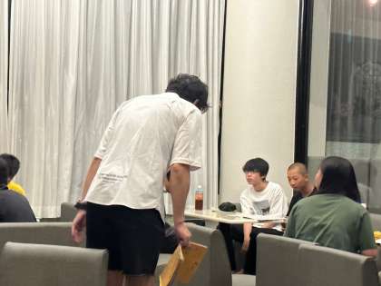 班長会議が1Fロビーにて行われ、まずは健康観察として、体調不良やケガをしている人が一人もいないことを確認しました。