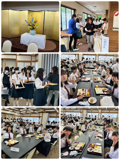 本館6Fから通路を通って、別館6Fから移動し、8F「石鎚の間」での朝食です。