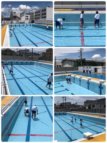 給食を食べてから全学年の体育委員が、プール掃除を行ってくれました。週明けから水泳の授業が始まります。頑張って泳いでください。