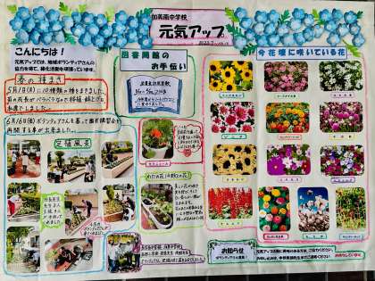 元気アップでは、地域ボランティアさんの協力を得て、緑化活動を頑張っています。