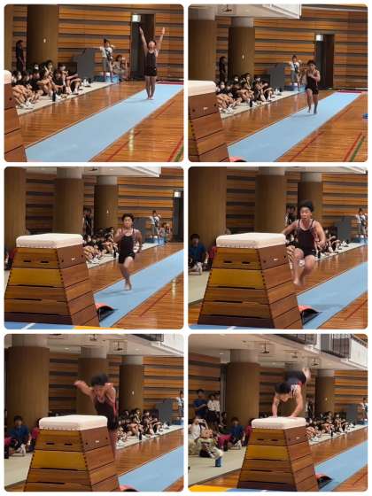 床の演技に続いて、跳馬が行われました。結果はどうなるかわかりませんが、精一杯頑張りました。お疲れ様でした。