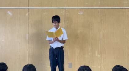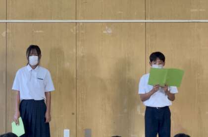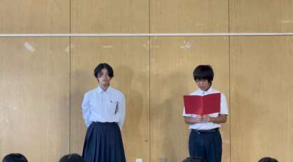 今週末で、前期の委員会・係が終了し、後期へ引き継がれます。本日は、各クラスの委員長から、前期の振り返りの発表がありました。