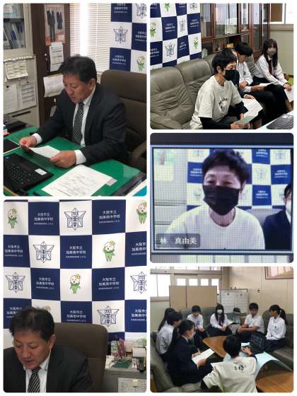 本日10月23日(月)は、校長室にてオンラインによる全校集会を行いました。
