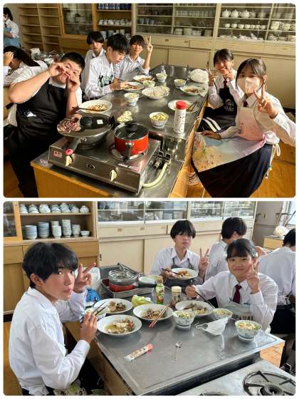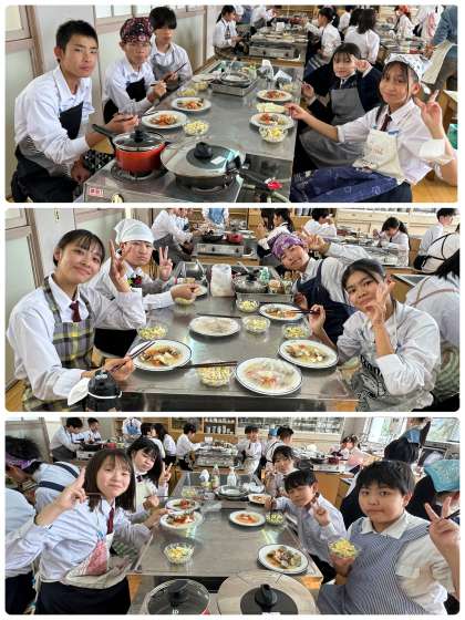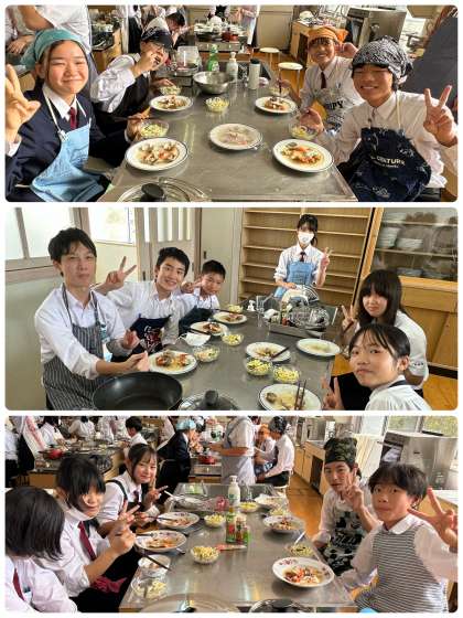 班の皆んなと協力しながら作った、アクアパッツァとマカロニサラダを美味しくいただきました。