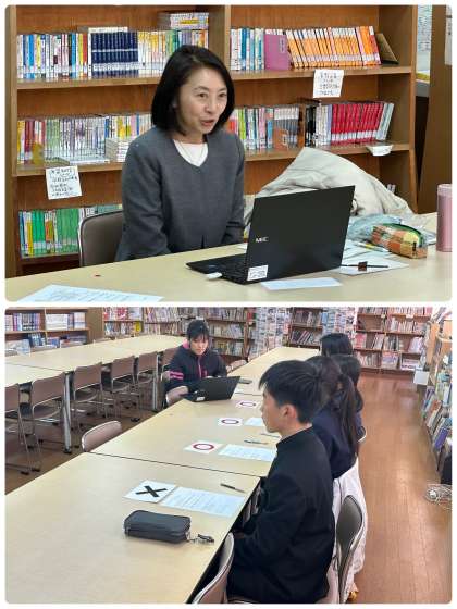 本日12月21日(木)4限目は、図書室から各教室へのオンラインにて、生活安全教室を実施しました。