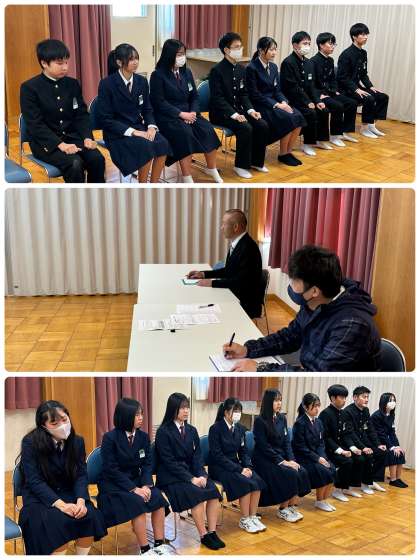 本日1月17日(水)5限目は、3年2組が多目的室にて面接練習を行いました。