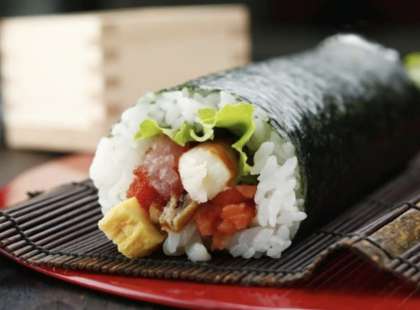 恵方巻とは、七福神を由来とした7種の具材を用いた太巻き寿司のことであり、「福を巻き込む」縁起の良い食べ物とされています。また、食べる際には独特な所作があり、恵方と呼ばれる、その年の福の神がいる方向を向き(2024年は東北東)、縁の切れぬよう、福が逃げぬよう、一気に食べ切ることで願いが叶うとも言われています。