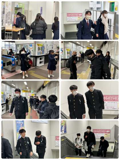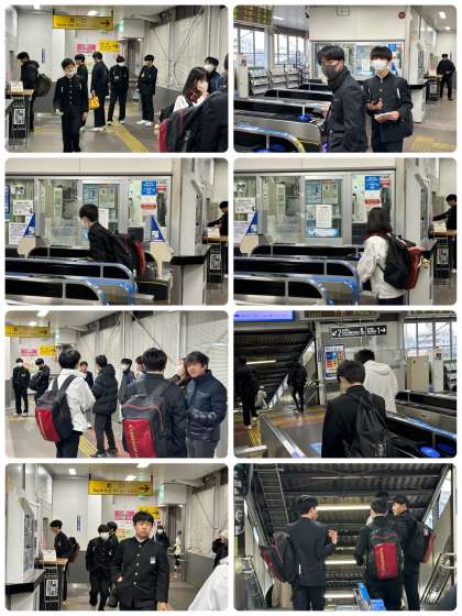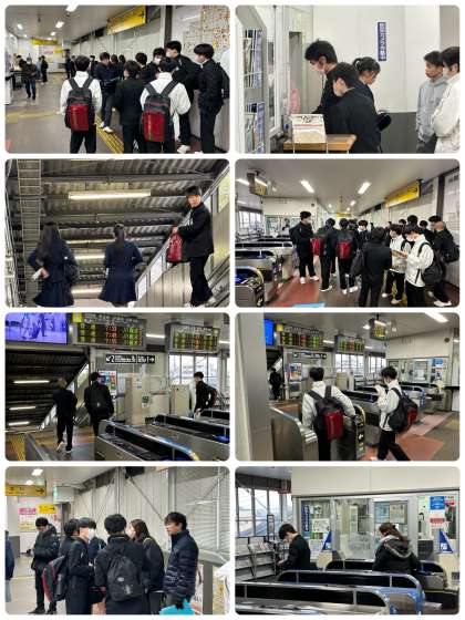 打ち合わせで決めていた時間の電車に乗車するため、受験校のグループでホームに降りて行きます。