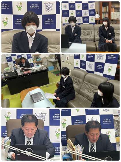 本日2月26日(月)は校長室にて、オンラインによる全校集会を実施しました。全校生徒とのあいさつの後、阪井校長先生から「あいさつの意味を感じながらのあいさつ」についてのお話がありました。