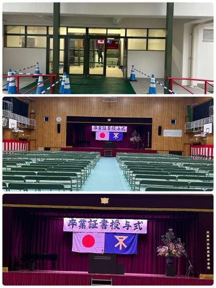 本来なら2月末に完成しているはずの体育館入口を何とか通れるようにしてもらいました。