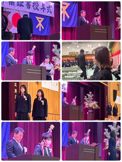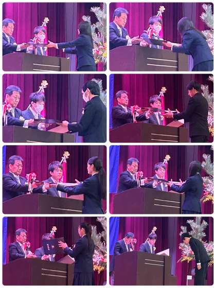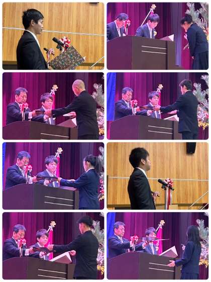 卒業証書授与では、担任の先生に一人ずつ名前を呼ばれ、しっかりと返事をして、阪井校長先生から卒業証書を受け取りました。