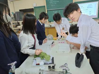先週に引き続き、最後のクラスが酸性アルカリ性を調べる実験を行いました。
