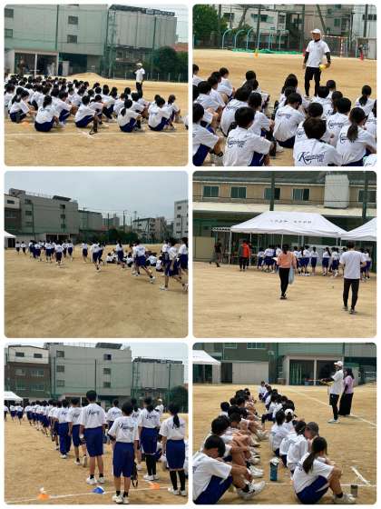 1年生にとっては、中学校での初めての体育大会なので、動きのイメージがなく、集合解散や開会式の動きを想像しながら確認しました。