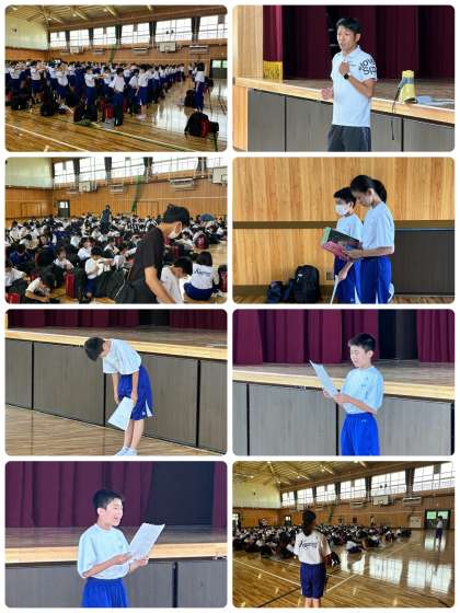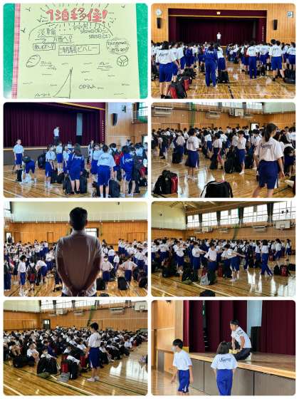 8:30までに体育館に集合し、諸注意等の後、出発式を行いました。