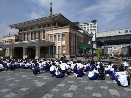 奈良駅から班別に出発しています。