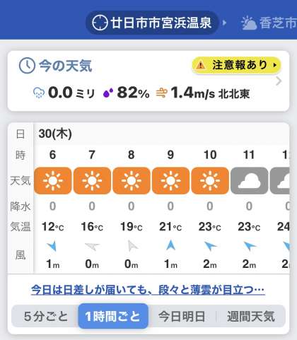 おはようございます。本日も快晴の朝を迎えています。最高気温予想は23度なので、大阪市より過ごしやすい一日となりそうです。