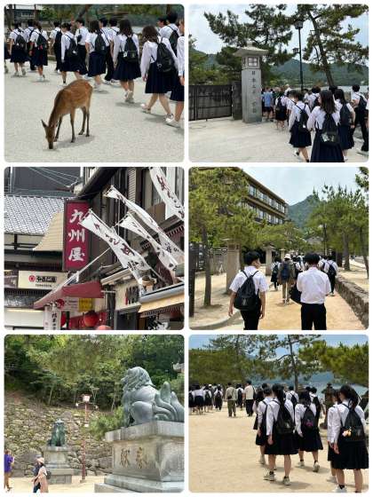 続いて、学級集合写真撮影のために厳島神社大鳥居前に移動しました。