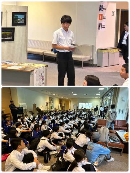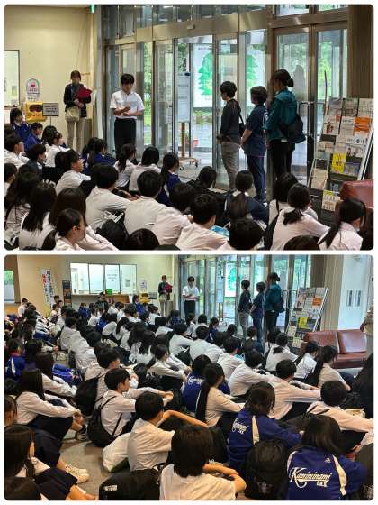 昼食会場にてクラスごとの退所式を予定していましたが、全員で1Fロビーでの退所式に変更しました。