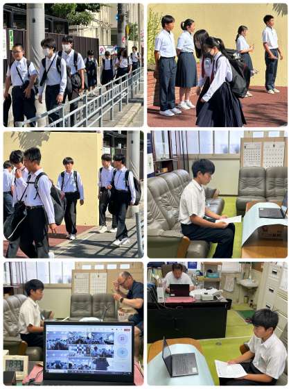 昨日の雨も上がり、少し蒸し蒸しした熱気の中での登校です。本日6月10日(月)は、オンラインでの全校集会を行いました。