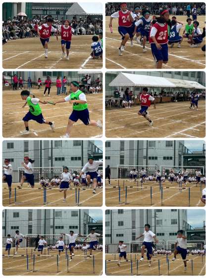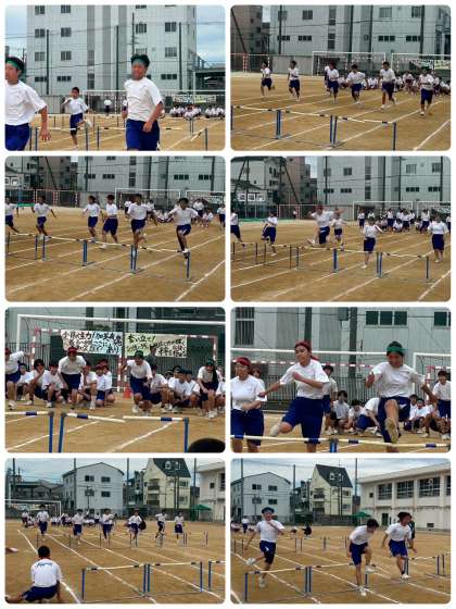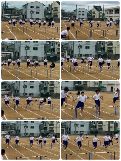 1年学級対抗全員リレーと50mハードル走です。