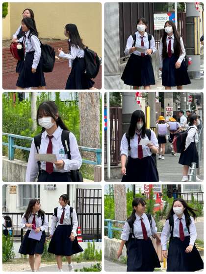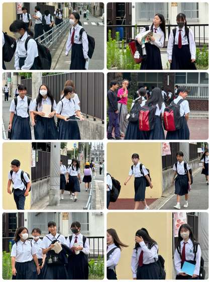 本日6月27日(木)、1学期末テスト第2日目の登校の様子です。勉強をしながら登校をしている生徒たちを撮影しました。